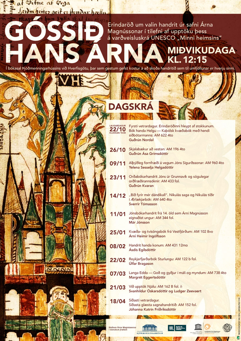 Poster to promote Arni Magnusson Institute lecture series about Icelandic manuscripts. See webpage here.